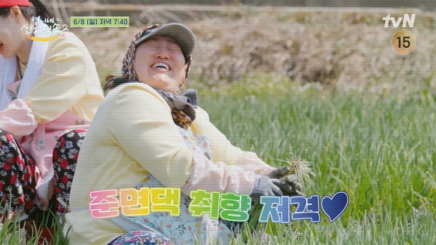 본격적인 밭일이 시작되자 염정아는 남다른 속도로 쪽파를 뽑는 기술을 선보이며 에이스다운 면모를 보여줬습니다. 막내 이재욱은 염정아의 "충청도 사투리 좀 혀봐~"라는 말에 곧바로 정체불명의 사투리를 쏟아냈고, 이는 누나들을 웃게 만들었습니다.