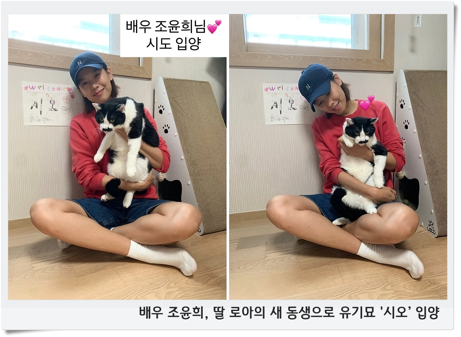배우 조윤희가 13일 자신의 인스타그램에 ‘로아 동생 시오’라는 글과 함께 여러 장의 사진을 올리며 새로운 가족을 소개했습니다. 사진 속에는 편안하고 건강해 보이는 반려묘 시오의 모습이 담겨 있었습니다. 또, 시오를 보호하던 기관 측 계정에서 “시오를 입양해주셔서 감사하다”는 댓글이 달려 눈길을 끌었습니다.