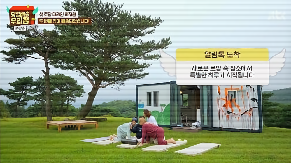 식사가 끝난 네 자매는 집 앞에 펼쳐진 넓은 초원으로 나가 각자 자리를 잡고, 대화를 나누며 아침 요가도 즐겼습니다. 한창 평화로운 시간이 이어지던 중, 갑자기 놀라운 소식이 전해졌는데요. 두 번째 집이 ‘배송 완료’됐다는 메시지를 받고 모두가 박수를 치며 환호했습니다.