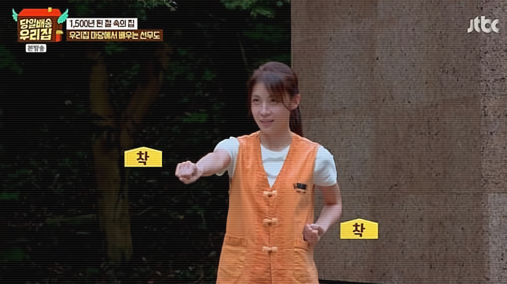 마침 잔잔히 비가 내려 운치가 더해진 가운데, 집 앞마당에서 본격적으로 수련이 시작됐습니다. 스승님의 지도에 따라 한 동작씩 익혀가던 중, 장영란이 유독 진지하게 몰입해 뜻밖에 스승님을 살짝 건드리는 해프닝이 벌어지면서 현장은 또 한 번 웃음바다가 됐습니다.