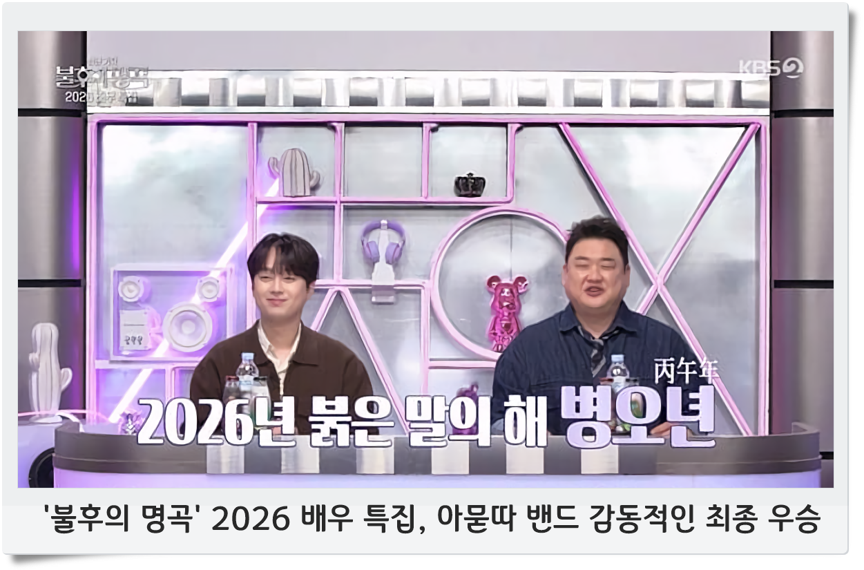 '불후의 명곡' 2026 배우 특집, 아묻따 밴드 감동적인 최종 우승맛난고의 방송 2026. 1. 4. 14:47반응형