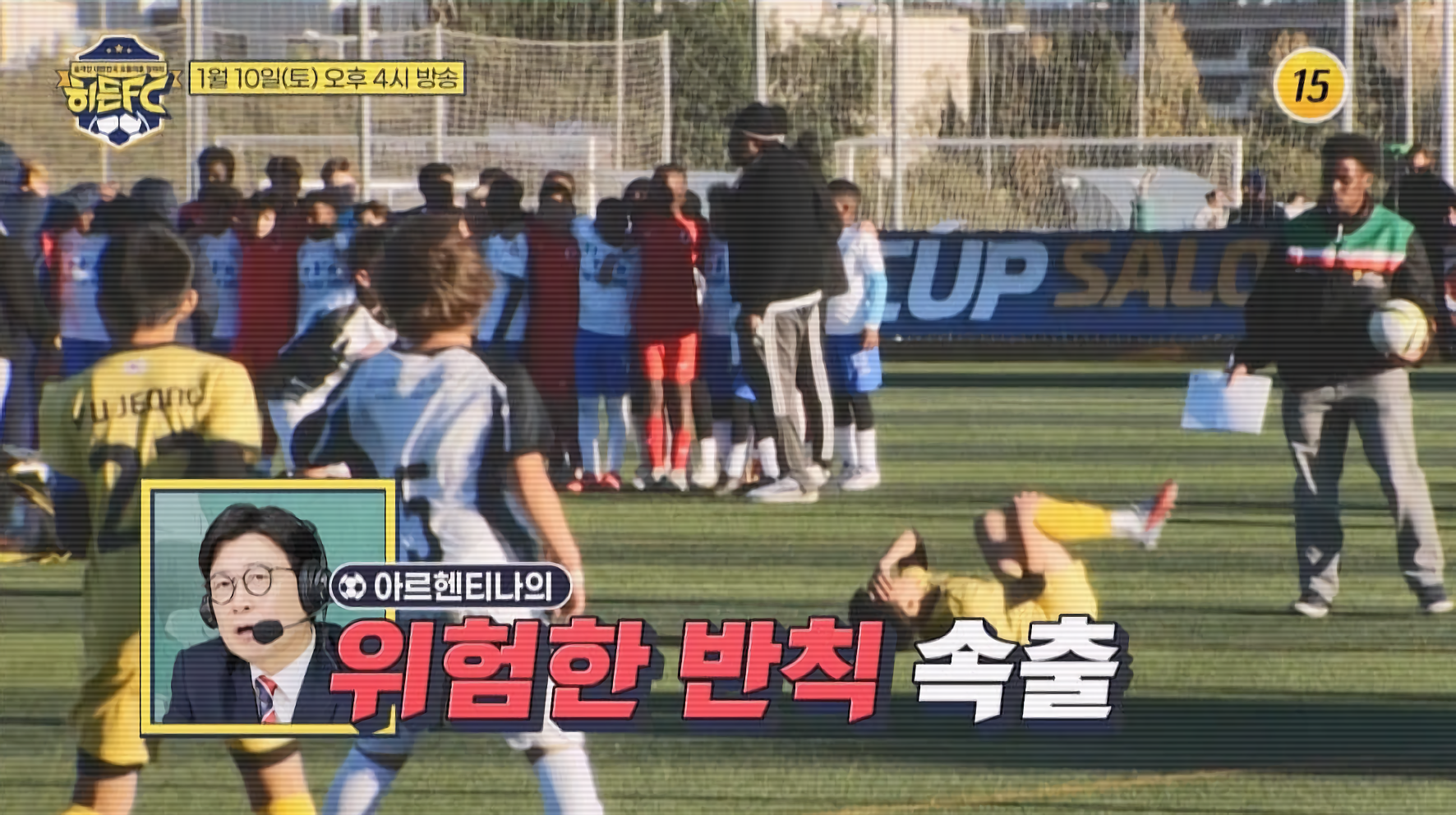 ‘히든FC’의 첫 ‘서프컵’ 상대는 바로 아르헨티나였습니다. 경기 전 현영민 해설위원은 “남미 축구는 리듬을 타면 정말 무서워진다. 우리 선수들도 초반부터 밀리지 않고 나가야 한다”고 목소리를 높였습니다. 그의 말처럼, 경기가 시작하자 아르헨티나 선수들은 남미 특유의 거칠고 힘 있는 플레이로 ‘히든FC’ 선수들을 밀어붙이기 시작했습니다. 우리 선수들은 거센 압박 속에 연달아 넘어지거나 거칠게 당하는 모습이 이어졌습니다.