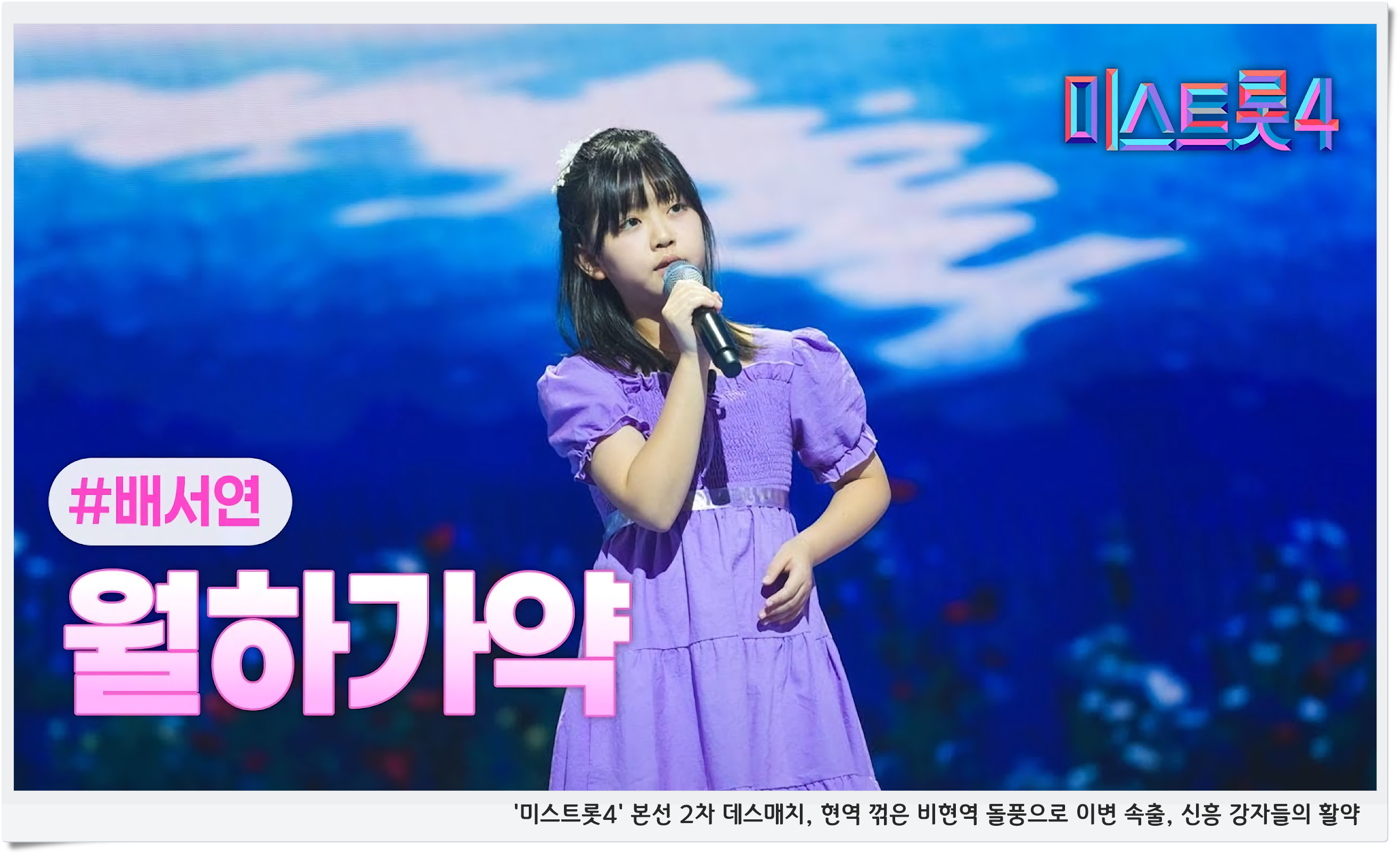 이처럼 ‘미스트롯4’ 본선 2차 데스매치에서는 현역 가수들을 이기는 대학부와 다른 장르 참가자들의 활약이 돋보였습니다. 다음 주에는 유미와 적우의 치열한 대결은 물론, 허찬미와 이소나 등 실력자들의 흥미진진한 무대가 이어질 예정입니다. 벌써부터 시청자들의 관심이 뜨겁게 쏠리고 있습니다.반응형'맛난고의 방송' 카테고리의 다른 글