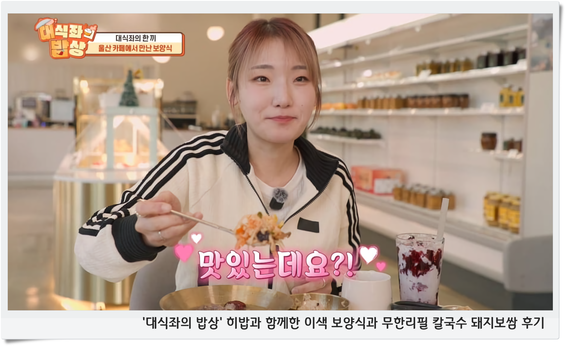 지난 1일 코미디TV 예능 ‘대식좌의 밥상’에서는 크리에이터 히밥만의 독특한 취향이 담긴 다채로운 식탁 풍경이 펼쳐졌습니다. 방송은 평범하지 않은 한 카페에서의 특별한 보양식으로 포문을 열었어요. 아기자기한 인테리어와 달리 식탁에는 건강까지 생각한 보양 식재료들이 한가득 차려져 있었습니다. 첫 번째로 히밥이 맛본 메뉴는 솔잎과 7가지 약재를 넣어 정성껏 끓인 오리 솔잎탕, 그리고 언양 한우에 블루베리를 더한 불고기 비빔밥이었어요. 특히 블루베리와 아보카도가 어우러진 그 비빔밥은 마치 포케를 떠올리게 하는 비주얼로 눈길을 사로잡았고, 히밥 역시 “맛있는데요? 너무 맛있다!”며 반색했습니다. “완전히 내 스타일”이라고 칭찬한 뒤, 이날의 한입 픽으로 골랐죠. 블루베리와 불고기가 어우러진 조화가 건강한 엄마 밥상 같아 만족스럽다고 평했습니다.