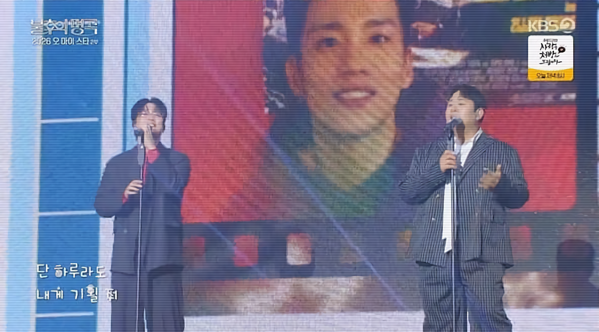 마지막으로 대망의 피날레 무대는 김광진과 WOODZ(우즈)가 장식했습니다. 박상태의 '나와 같다면'을 선곡해 원곡의 서정적이고 담백한 분위기에 자신들만의 몽글몽글한 감성을 더했습니다. 밴드 사운드와 함께 반전된 분위기 속에서 두 사람은 한 팀처럼 완벽한 화음을 선보였습니다. 특히 세 단 고음으로 곡의 감정을 극대화하여 보는 이에게 강렬한 카타르시스를 선사했습니다. WOODZ는 전역 후 첫 '불후' 출연을 기념해 'Drowning' 라이브까지 선보이며 무대를 더욱 빛냈습니다. 이들의 폭발적인 시너지는 모든 판정단을 열광시켰으며, 김광진 X WOODZ가 최종 우승의 기쁨을 안았습니다.