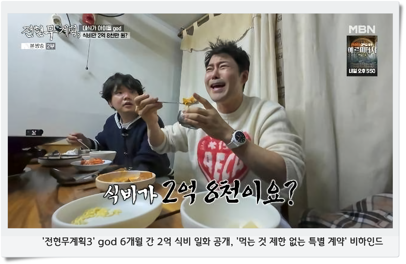 '전현무계획3' god 6개월 간 2억 식비 일화 공개, '먹는 것 제한 없는 특별 계약' 비하인드맛난고의 방송 2026. 2. 14. 14:28반응형