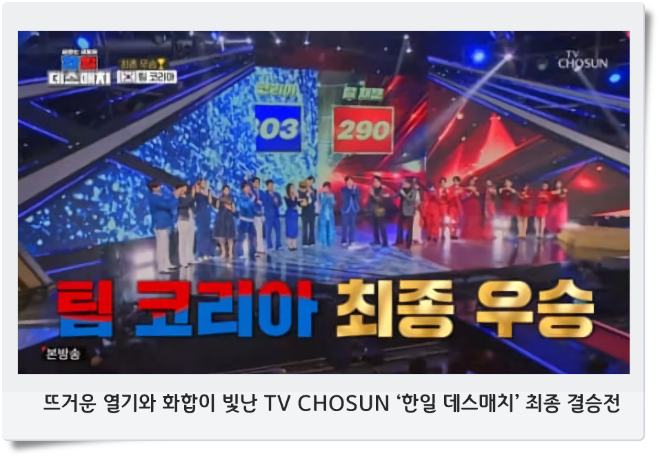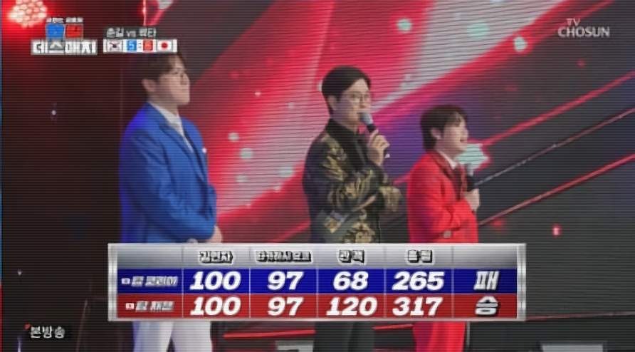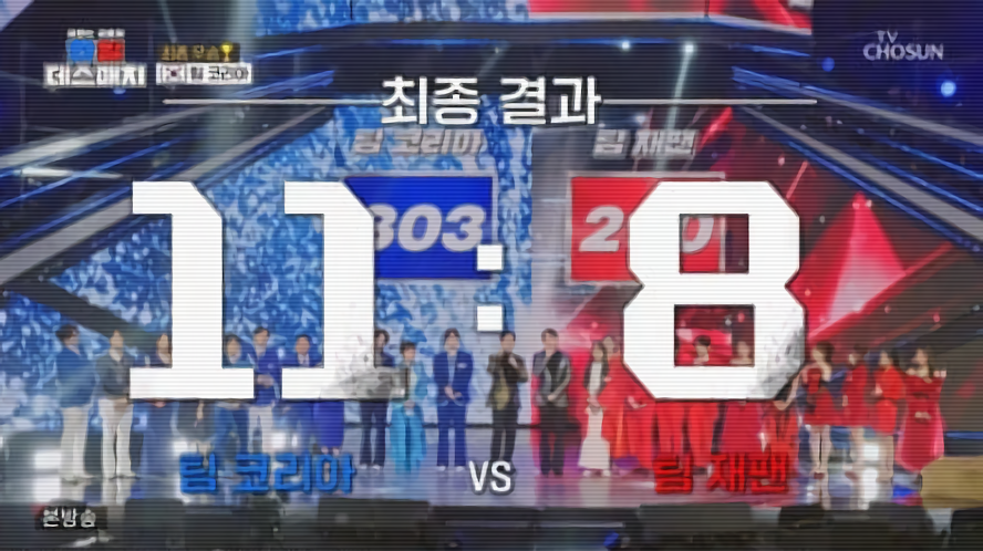 TV CHOSUN 설 특집 ‘금타는 금요일’의 ‘한일 데스매치’가 2주간의 치열한 경쟁 끝에, 팀 코리아가 11 대 8로 일본 팀을 꺾으며 자존심을 지켰습니다. 이번 대결은 한일 양국 트롯 최강자들의 불꽃 튀는 승부와 더불어, 서로 화합하는 무대까지 선보여 특별한 의미를 더했습니다.