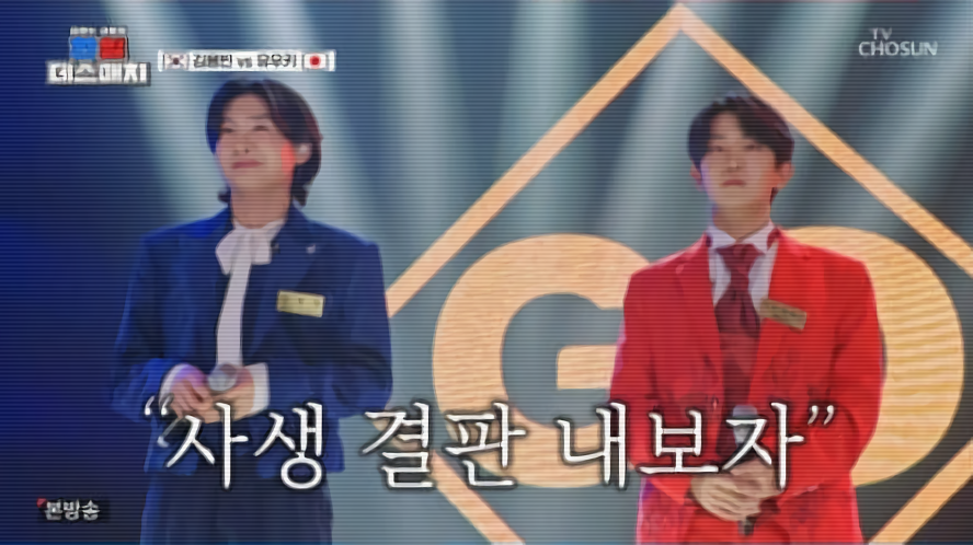 마지막 승부가 펼쳐진 3라운드 파이널 데스매치에서는 한 곡 승부가 이어졌습니다. 김용빈과 시마 유우키는 박용하의 ‘처음 그 날처럼’을 각자의 색깔로 소화했는데, 김용빈이 296점 대 282점으로 승리해 팀에 황금별 3개를 보탰고, 경기의 흐름도 뒤바뀌기 시작했습니다. 이후 춘길과 류타의 무대는 출연진도 ‘레전드 무대’라며 극찬했으나, 관객 점수에서 류타가 큰 차이로 이기면서 승기를 잡는 듯했습니다. 하지만 정서주가 리에와의 맞대결에서 일본어 가사까지 완벽하게 소화하며 298점을 기록, 다시금 팀 코리아에 황금별 3개를 안겼습니다. 이로써 두 팀은 8 대 8, 동점이 되어 승부는 처음으로 되돌아갔습니다.