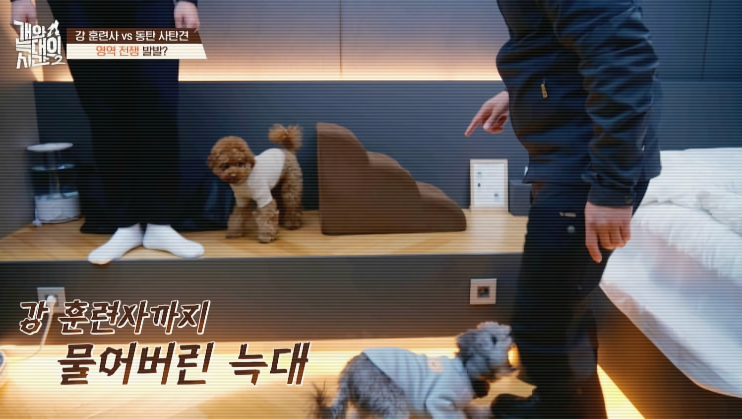 채널A ‘개와 늑대의 시간2’ 8회에서는 경기도 화성에 사는 한 가정의 반려견 두 마리가 조명됐습니다. 이 집에는 푸들과 말티푸가 함께 살고 있는데, 두 반려견 모두 성격이 크게 달랐습니다. 그중 말티푸는 공격성과 경계심이 유독 강해서 ‘동탄 사탄견’이라는 별명까지 붙었습니다. 보호자가 공을 뺏거나 몸을 만지려고 하면 입질을 하고, 훈육용 가짜 손도 세게 무는 등 공격적인 행동이 심각했습니다. 보호자의 말에 따르면 지금까지 입질을 시도한 것이 약 400번이나 된다고 합니다. 무엇보다 위험한 점은 이 집에 27개월 된 아기가 함께 있다는 것이었습니다. 아이가 조금만 움직여도 말티푸가 으르렁거리며 경계를 했고, 실제로 아이를 문 적도 두 번이나 있어 늘 긴장감이 감돌았습니다. 보호자와 아이, 그리고 두 반려견이 한 침대에서 모두 함께 자는 모습은 전문가들과 시청자들에게 큰 충격과 우려를 안겼습니다.