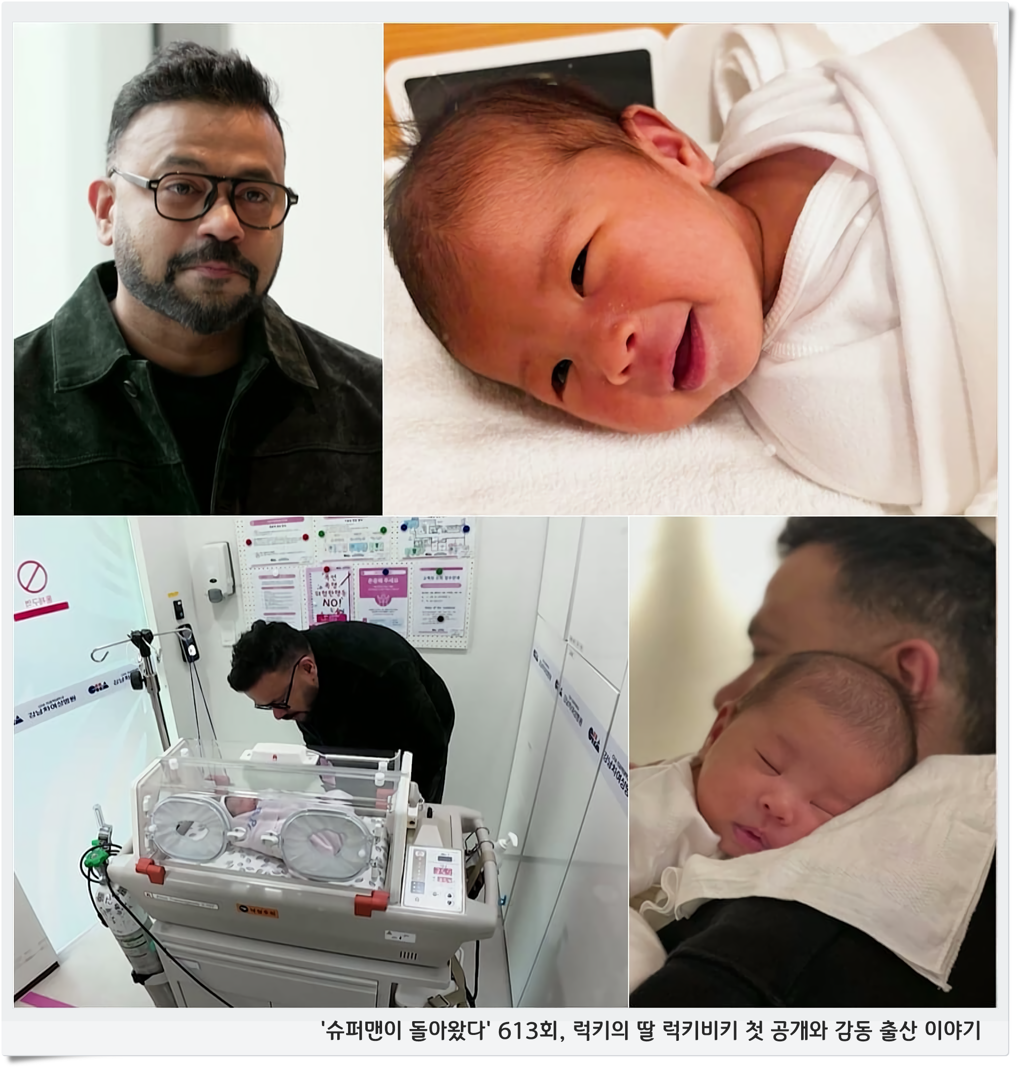 KBS2 ‘슈퍼맨이 돌아왔다’ 613회에서는 48세의 늦깎이 아빠 럭키가 소중히 기다리던 아내의 출산 순간과 함께 딸 럭키비키(태명)를 처음 공개합니다. 이번 방송은 ‘럭키비키~ 인도 베이비의 탄생’을 주제로 MC 김종민과 랄랄이 함께하며 따뜻한 가족의 순간을 전할 예정입니다.